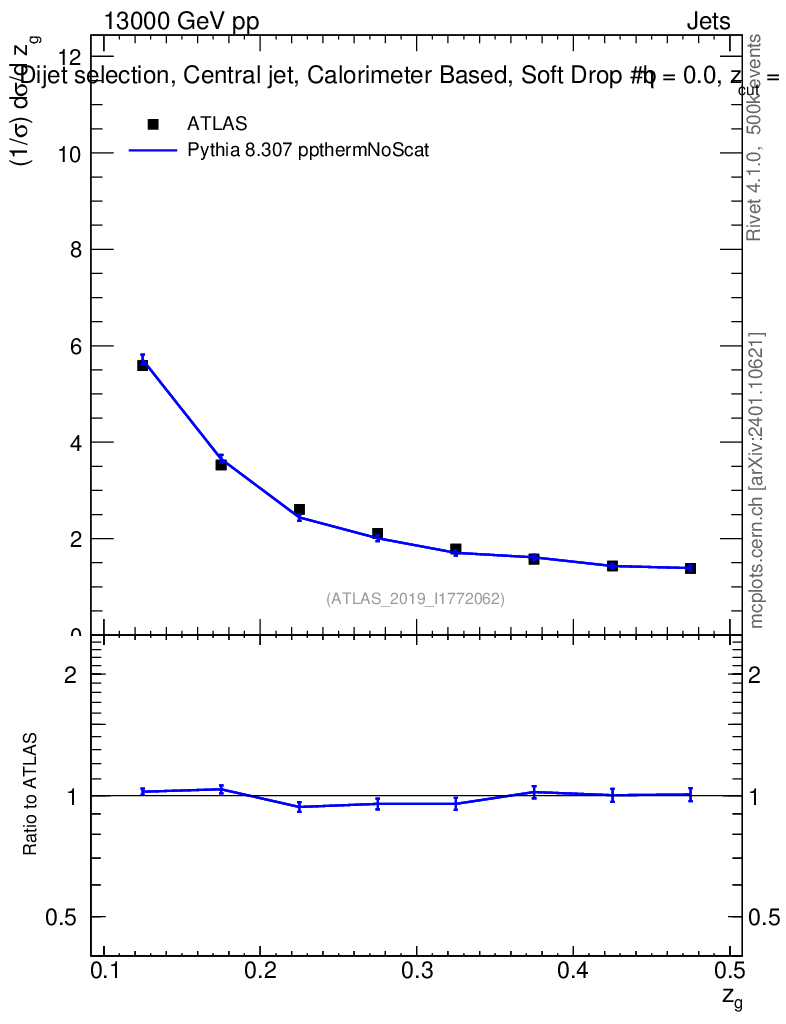 Lines: data, pythia8 8.307 ppthermNoScat |