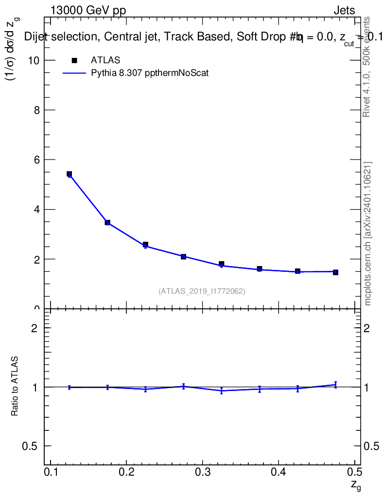 Lines: data, pythia8 8.307 ppthermNoScat |