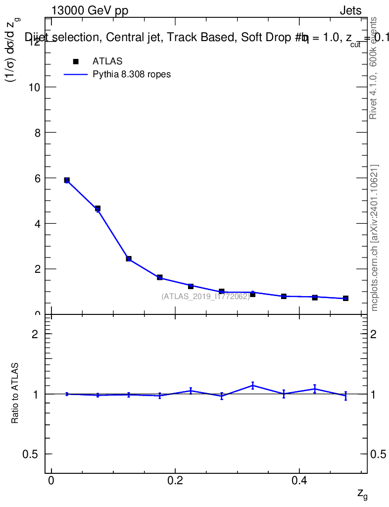 Lines: data, pythia8 8.308 ropes |