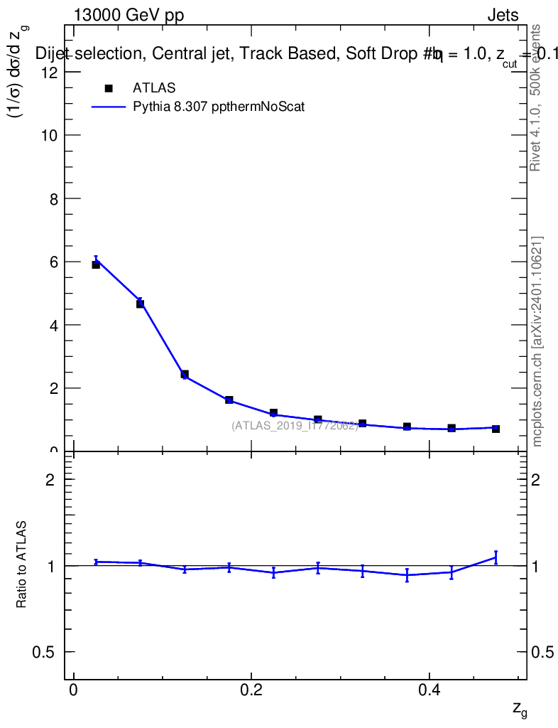 Lines: data, pythia8 8.307 ppthermNoScat |