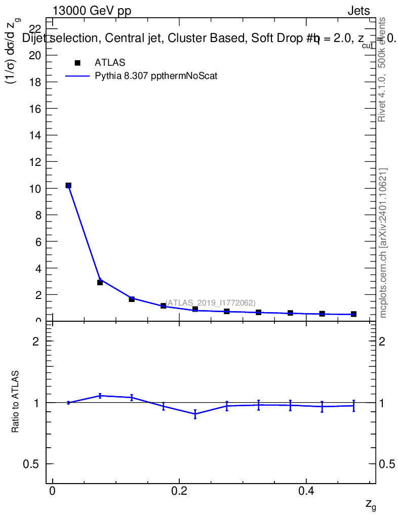 Lines: data, pythia8 8.307 ppthermNoScat |