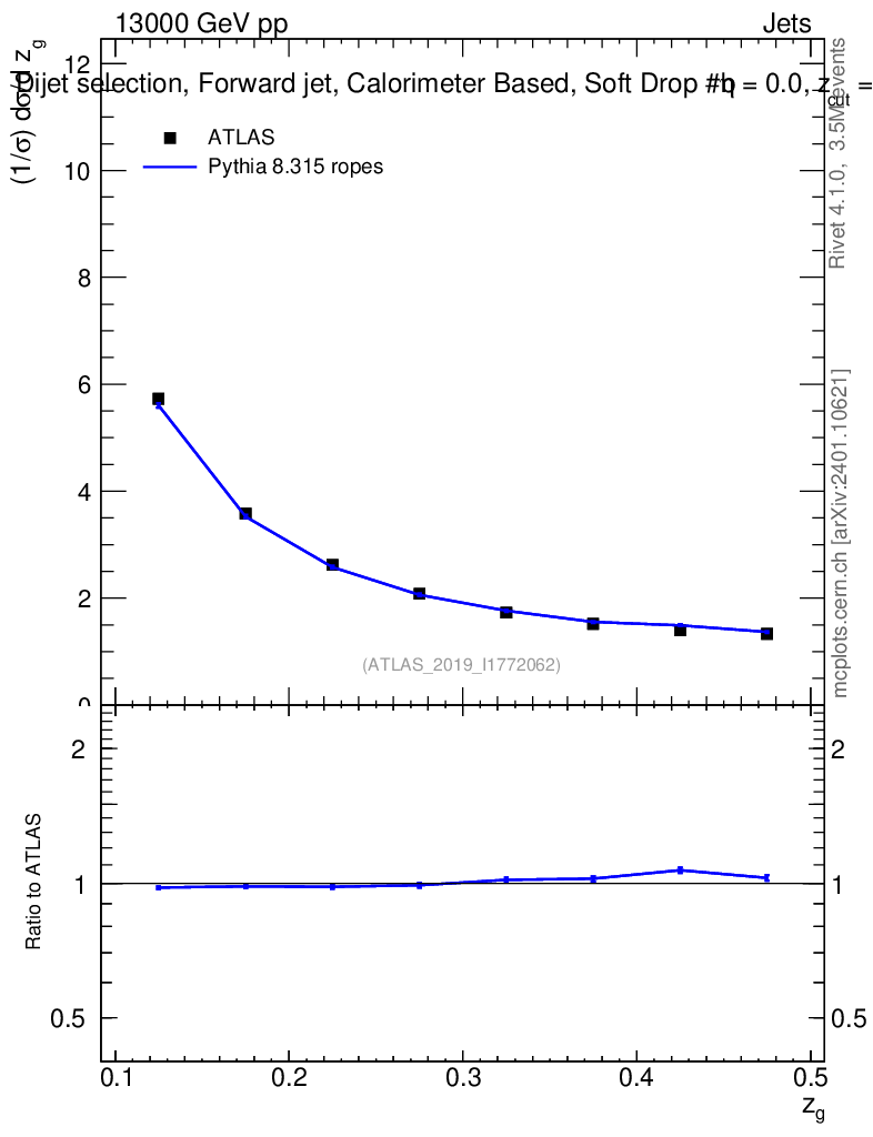 Lines: data, pythia8 8.315 ropes |