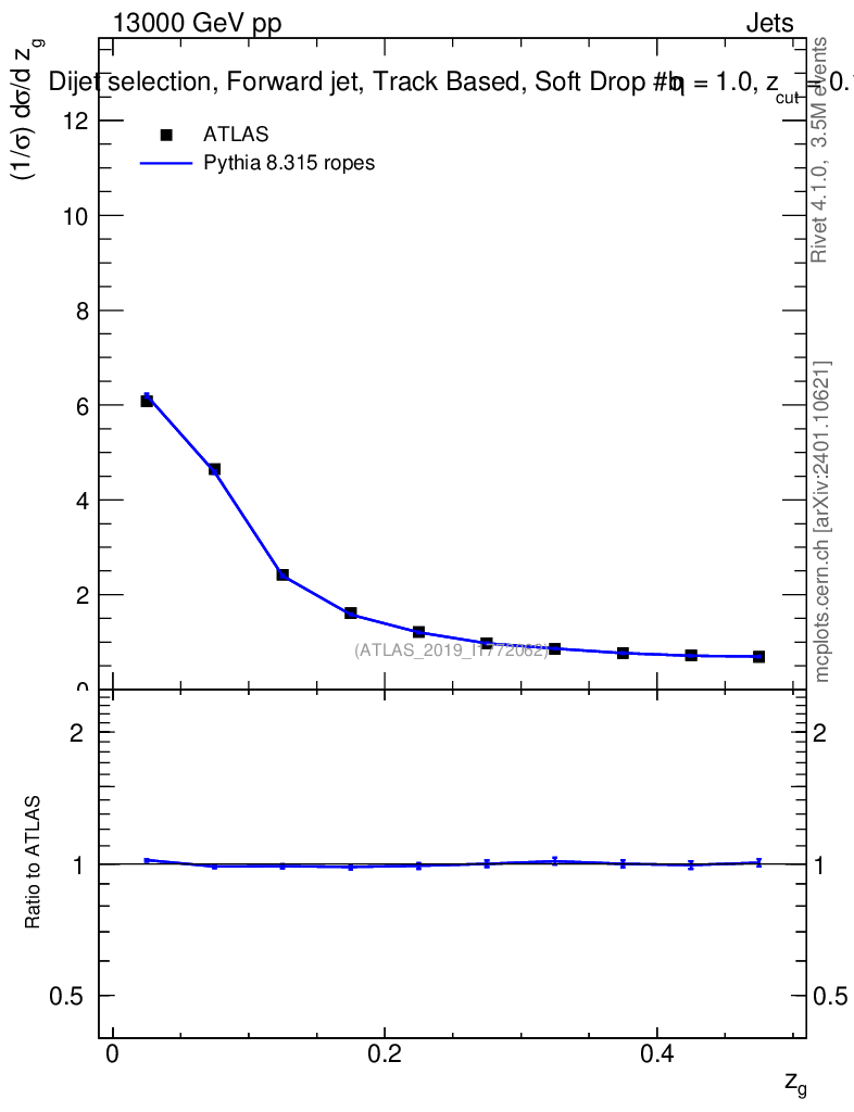 Lines: data, pythia8 8.315 ropes |