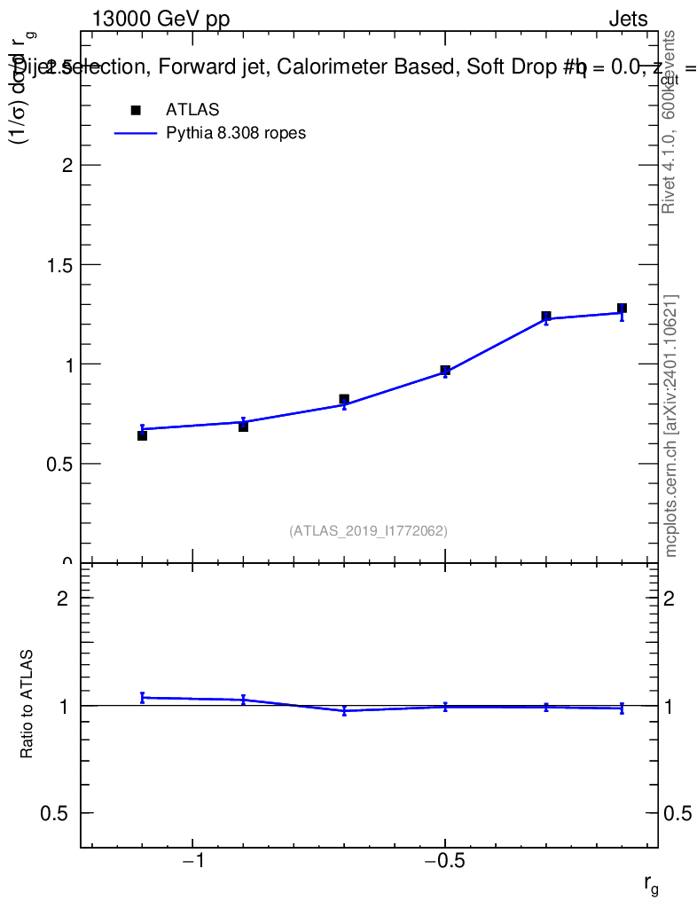 Lines: data, pythia8 8.308 ropes |