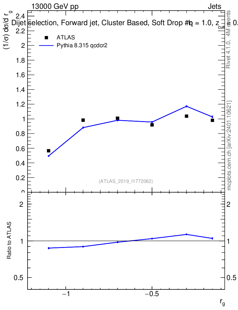 Lines: data, pythia8 8.315 qcdcr2 |