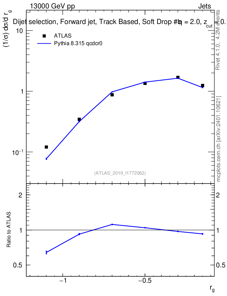 Lines: data, pythia8 8.315 qcdcr0 |