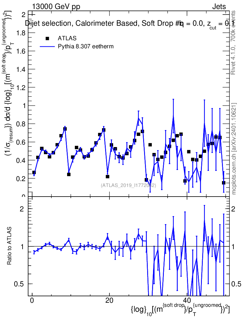 Lines: data, pythia8 8.307 eetherm |