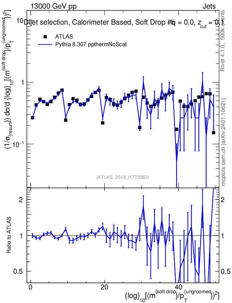 Lines: data, pythia8 8.307 ppthermNoScat |
