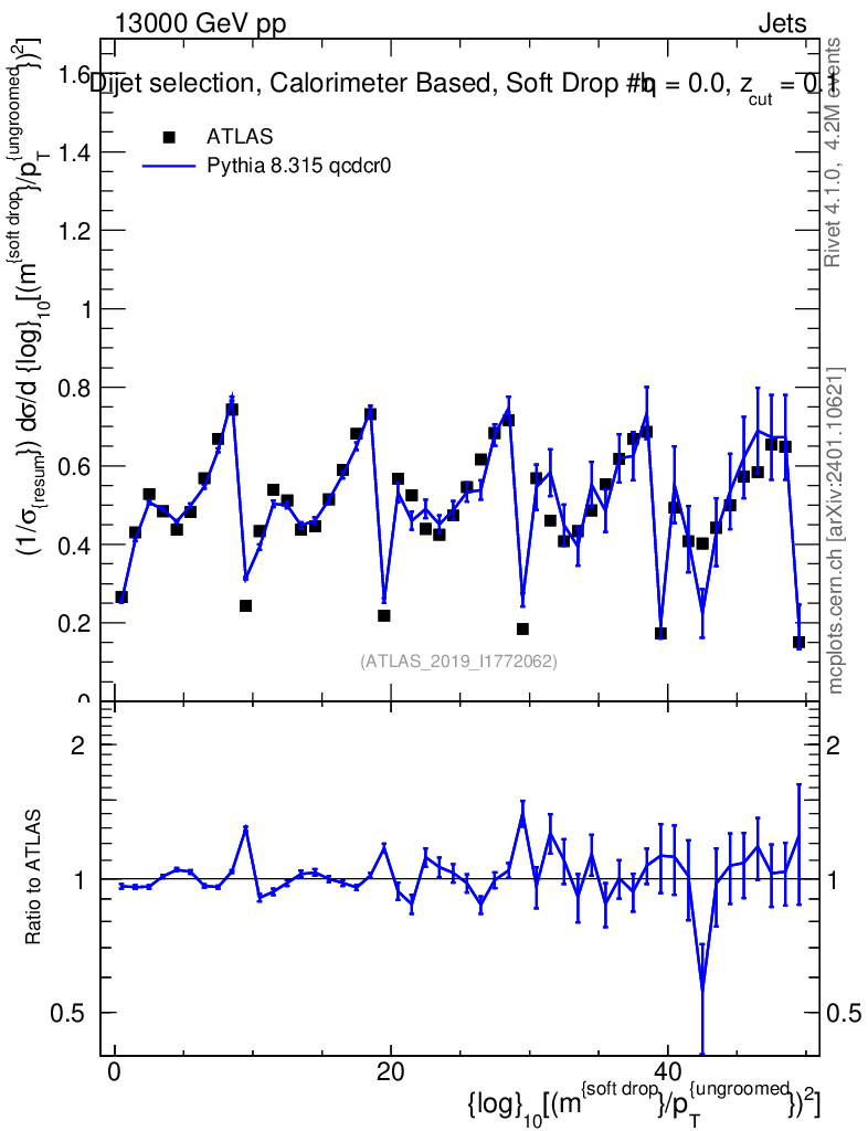 Lines: data, pythia8 8.315 qcdcr0 |