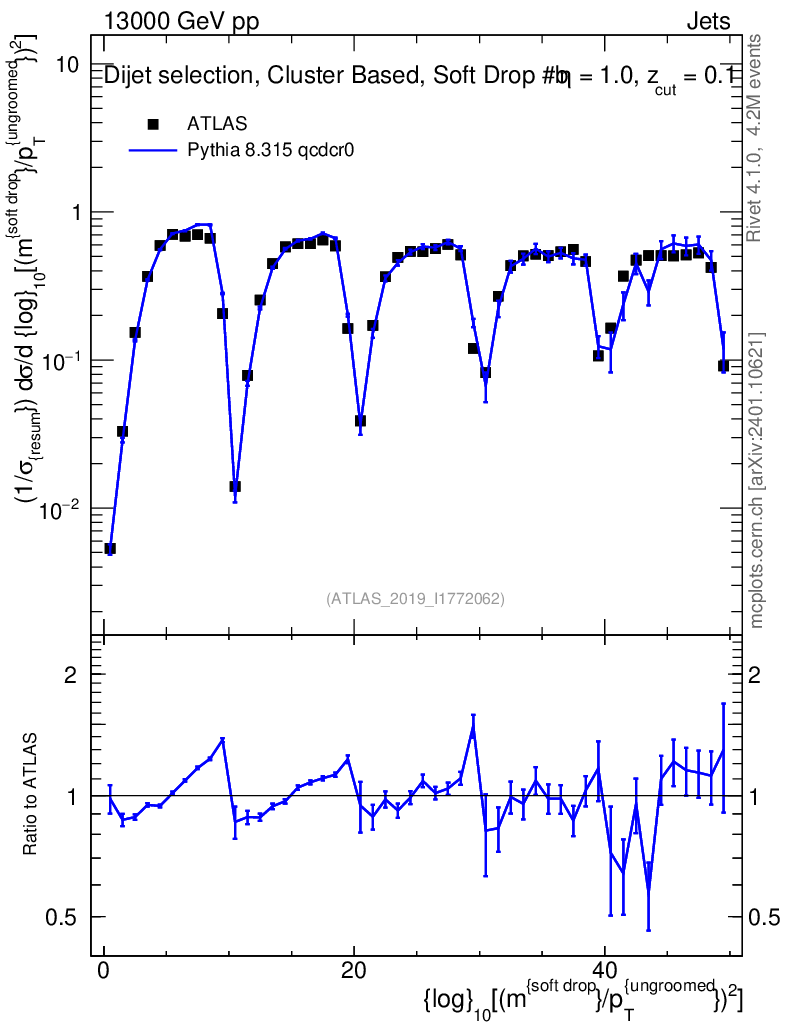 Lines: data, pythia8 8.315 qcdcr0 |