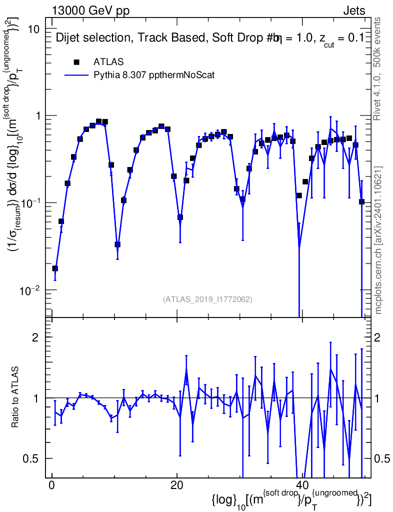 Lines: data, pythia8 8.307 ppthermNoScat |