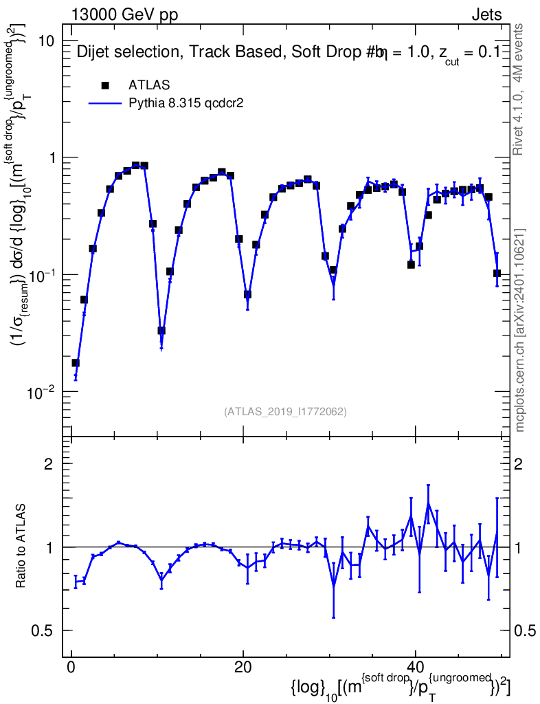Lines: data, pythia8 8.315 qcdcr2 |