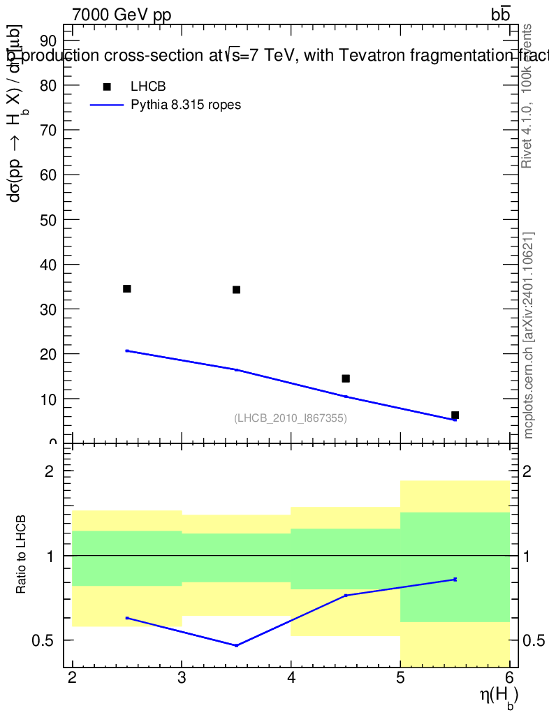 Lines: data, pythia8 8.315 ropes |