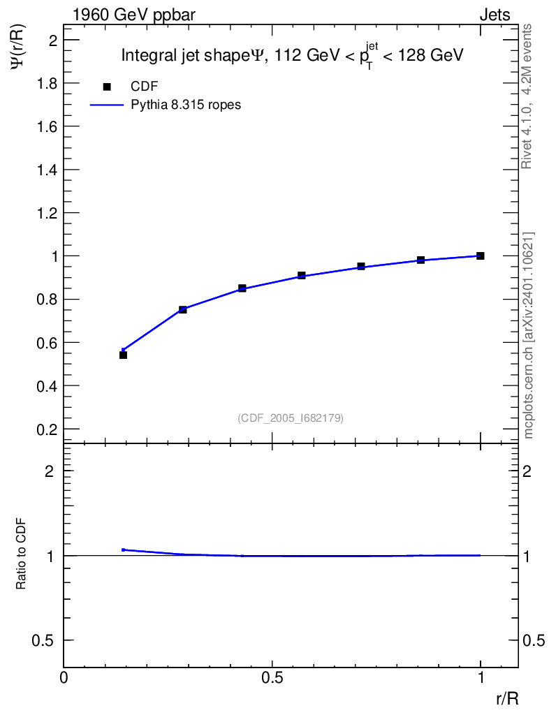 Lines: data, pythia8 8.315 ropes |