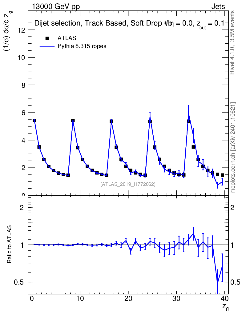 Lines: data, pythia8 8.315 ropes |