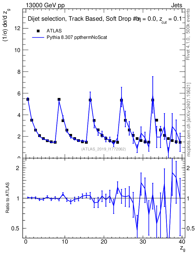 Lines: data, pythia8 8.307 ppthermNoScat |