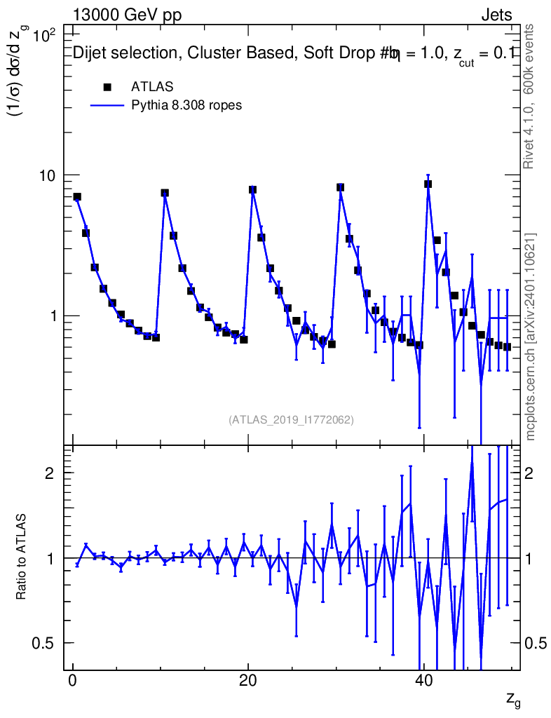 Lines: data, pythia8 8.308 ropes |