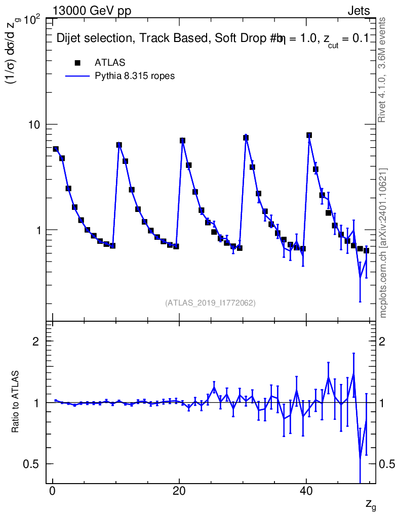 Lines: data, pythia8 8.315 ropes |