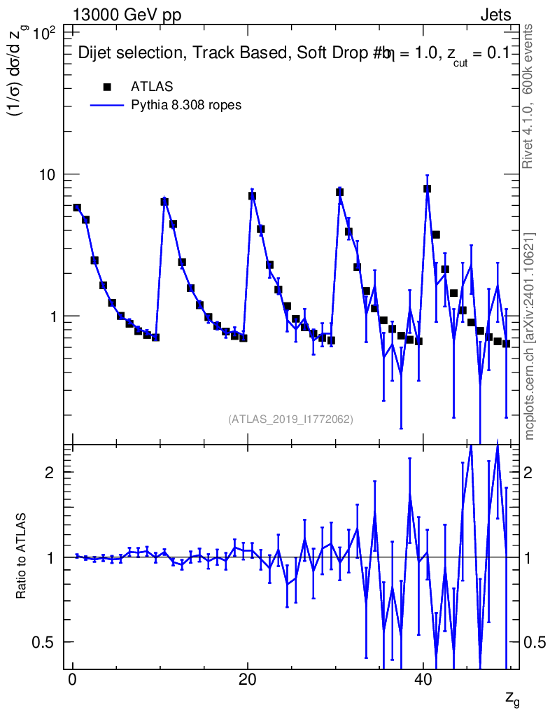 Lines: data, pythia8 8.308 ropes |