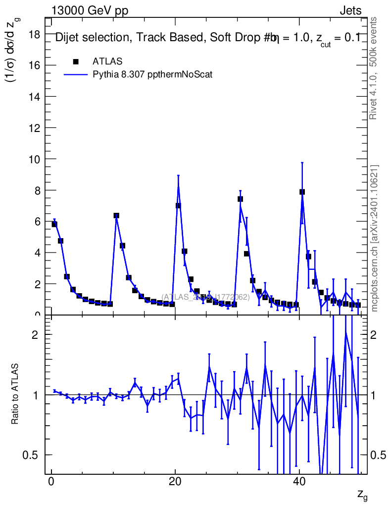 Lines: data, pythia8 8.307 ppthermNoScat |