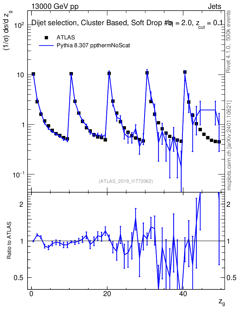 Lines: data, pythia8 8.307 ppthermNoScat |
