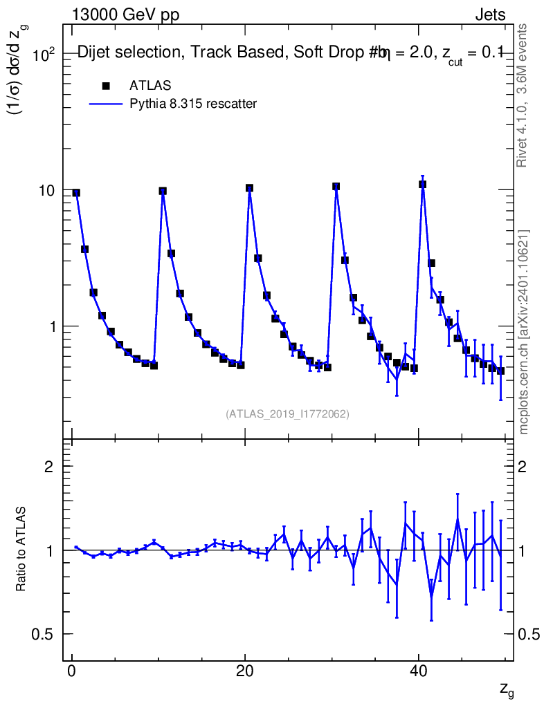 Lines: data, pythia8 8.315 rescatter |