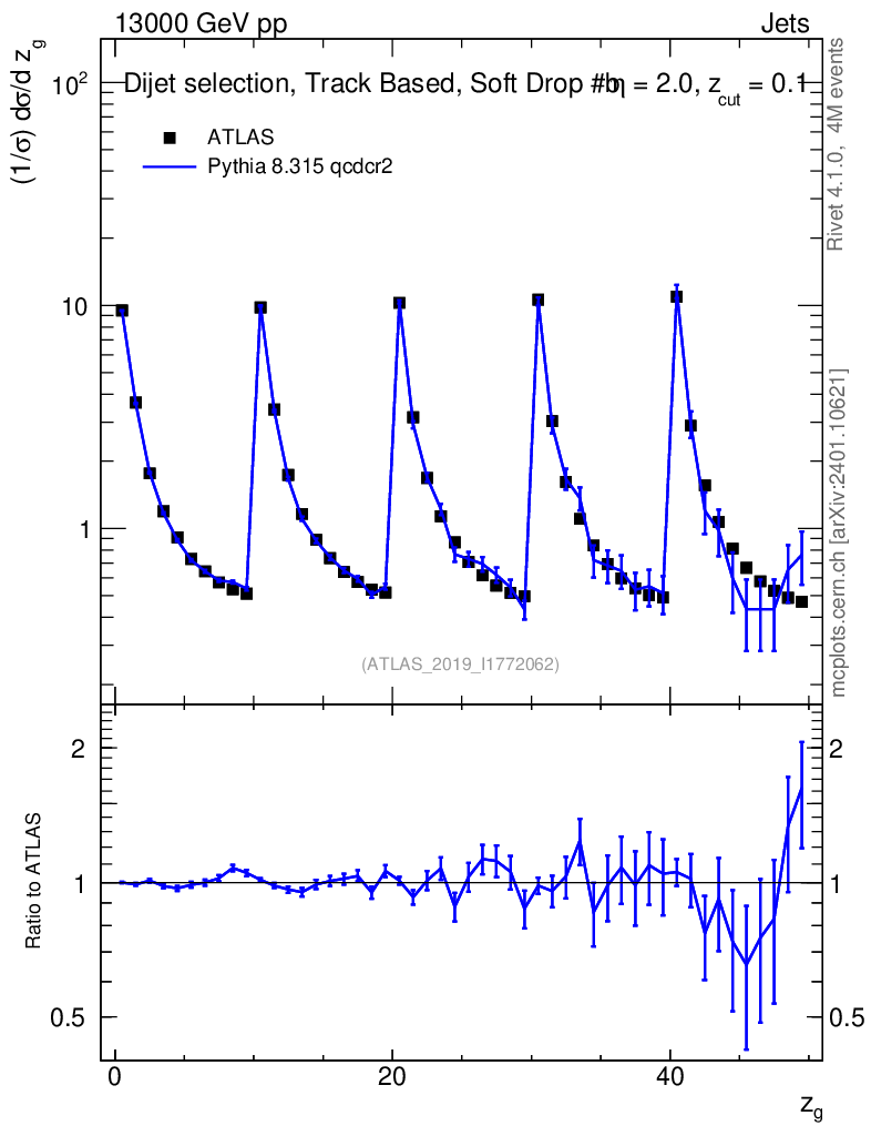 Lines: data, pythia8 8.315 qcdcr2 |
