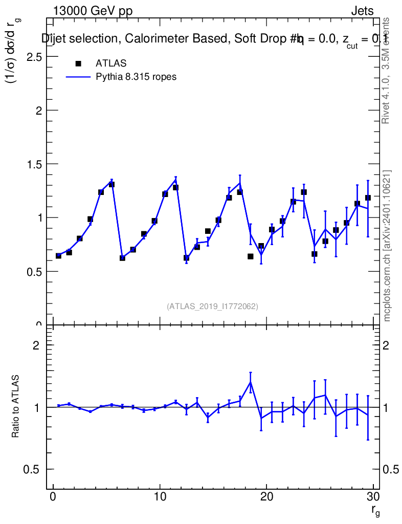 Lines: data, pythia8 8.315 ropes |