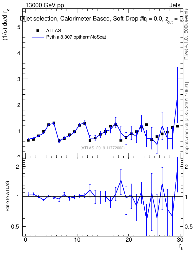 Lines: data, pythia8 8.307 ppthermNoScat |