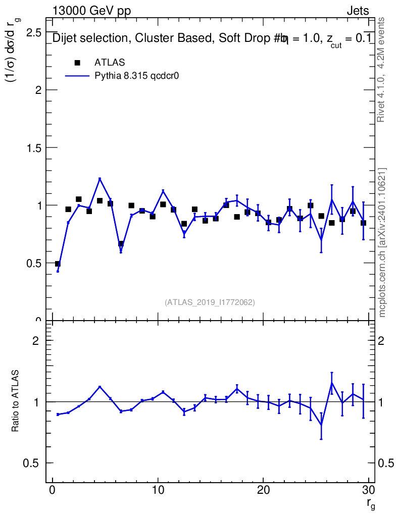 Lines: data, pythia8 8.315 qcdcr0 |