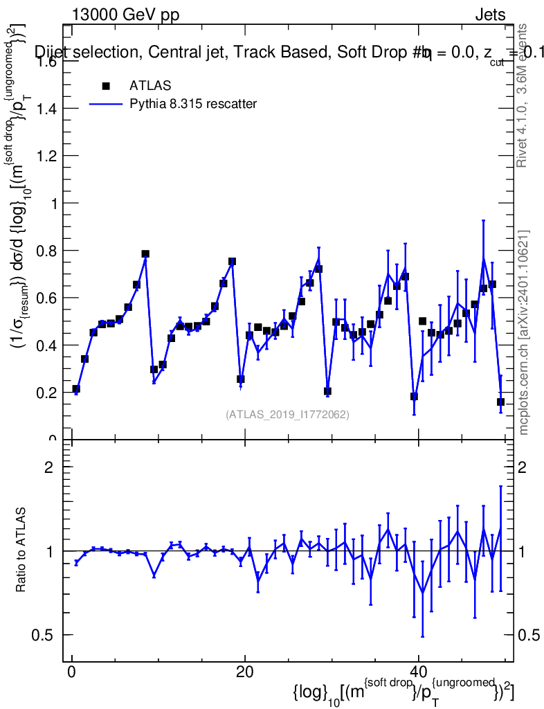 Lines: data, pythia8 8.315 rescatter |