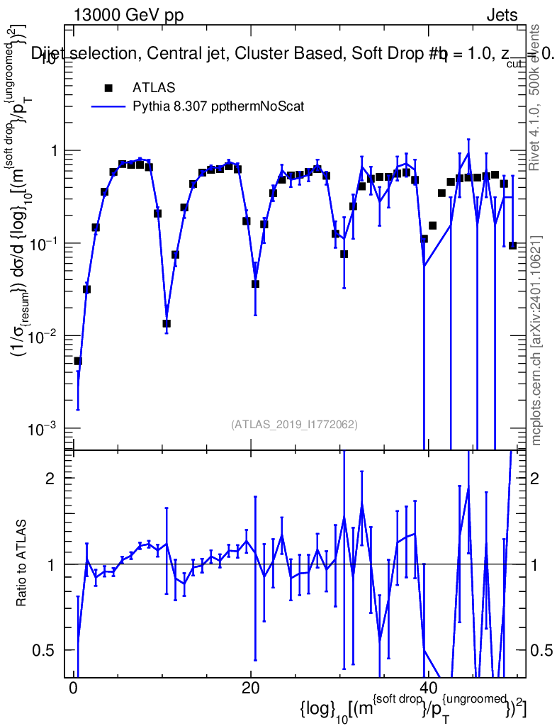 Lines: data, pythia8 8.307 ppthermNoScat |