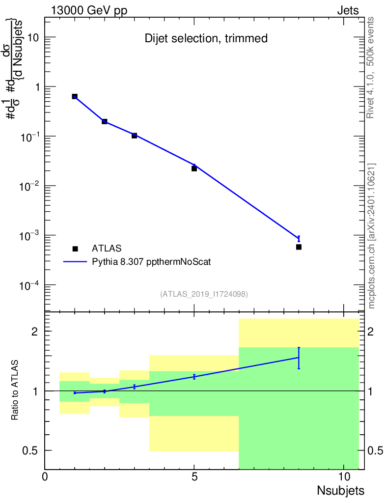 Lines: data, pythia8 8.307 ppthermNoScat |