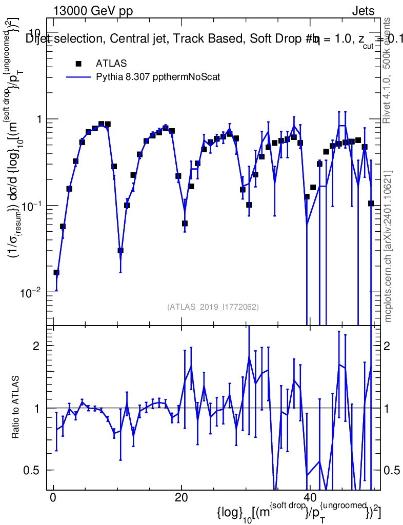 Lines: data, pythia8 8.307 ppthermNoScat |