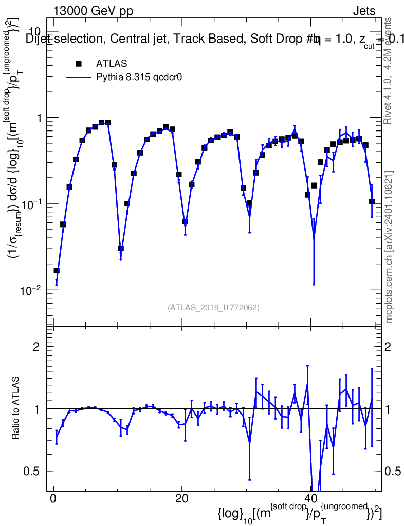 Lines: data, pythia8 8.315 qcdcr0 |
