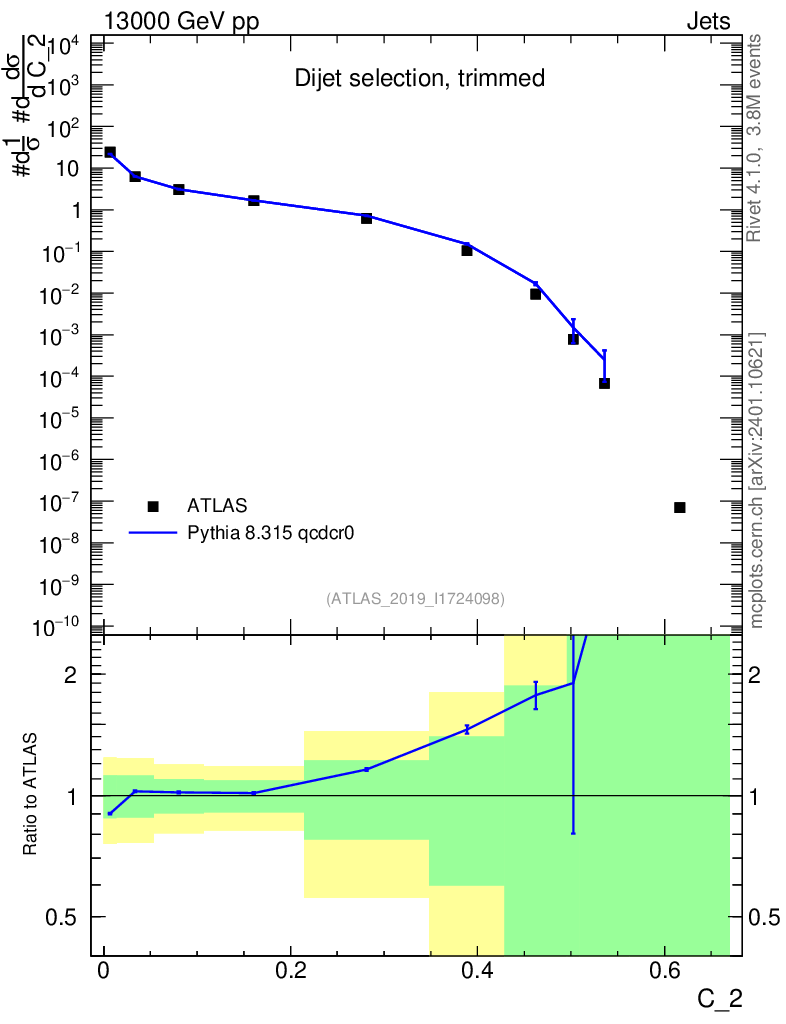 Lines: data, pythia8 8.315 qcdcr0 |