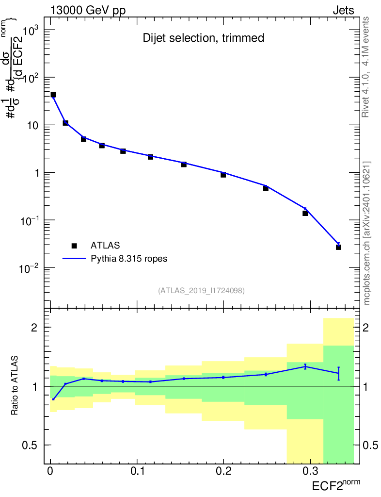 Lines: data, pythia8 8.315 ropes |