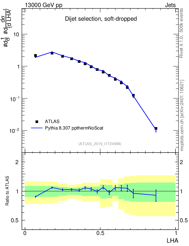 Lines: data, pythia8 8.307 ppthermNoScat |