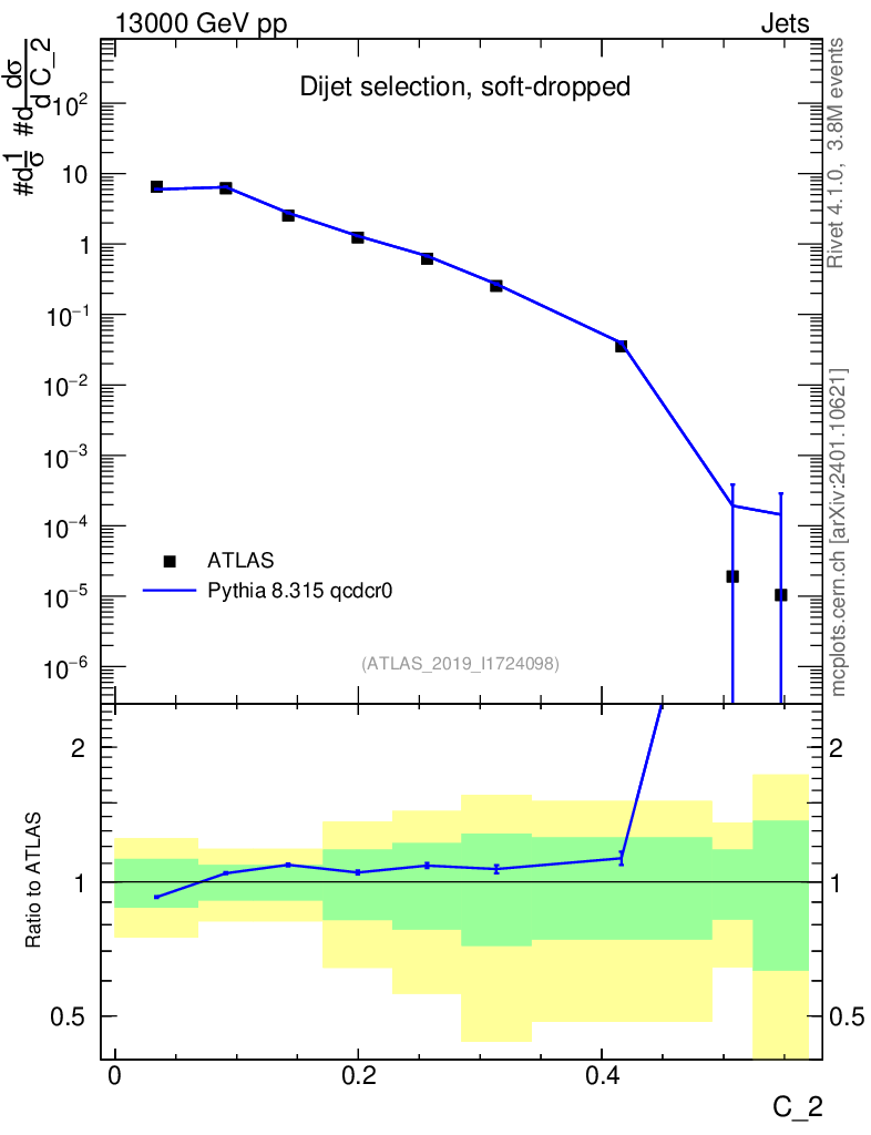 Lines: data, pythia8 8.315 qcdcr0 |