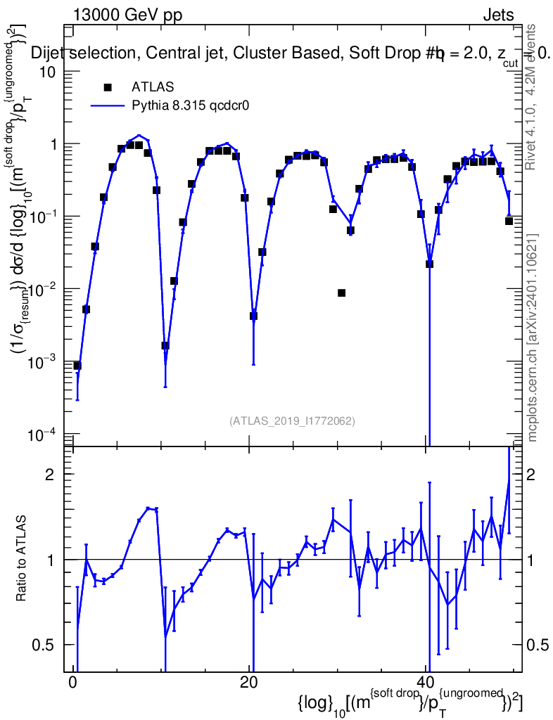 Lines: data, pythia8 8.315 qcdcr0 |