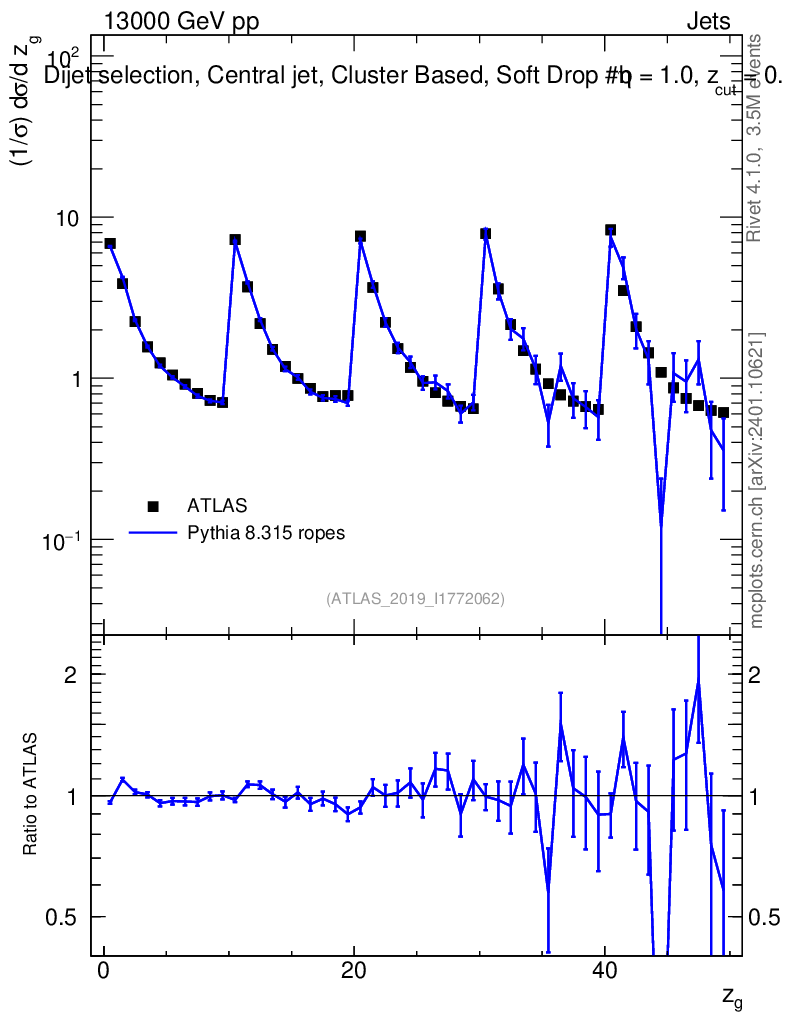Lines: data, pythia8 8.315 ropes |