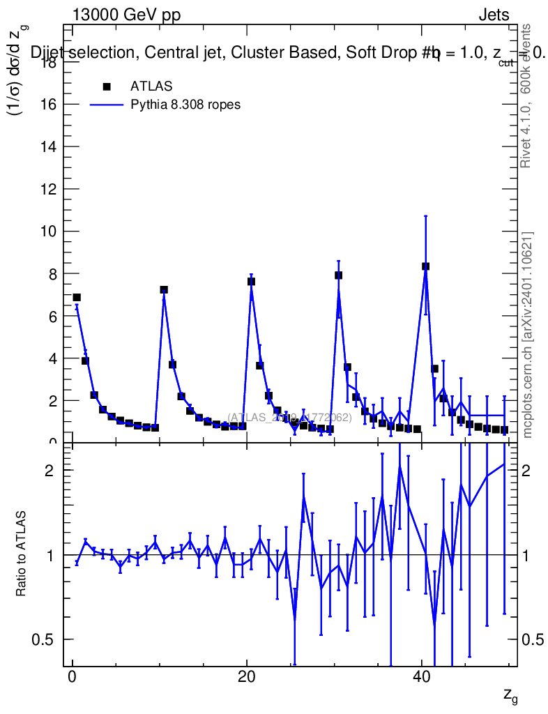 Lines: data, pythia8 8.308 ropes |