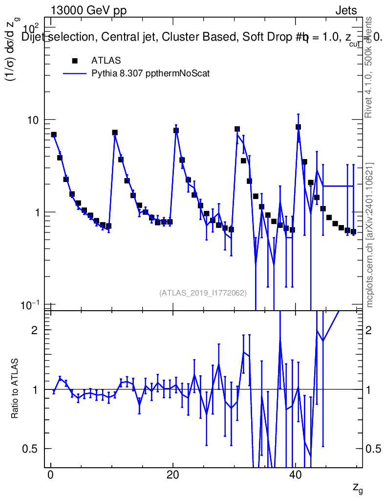 Lines: data, pythia8 8.307 ppthermNoScat |