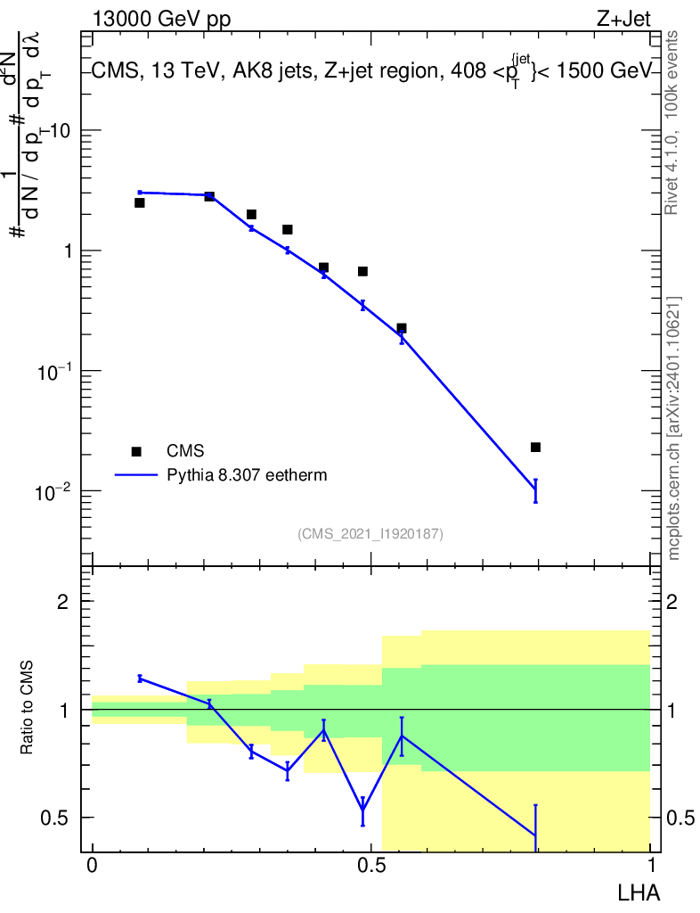 Lines: data, pythia8 8.307 eetherm |