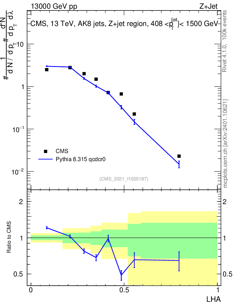 Lines: data, pythia8 8.315 qcdcr0 |