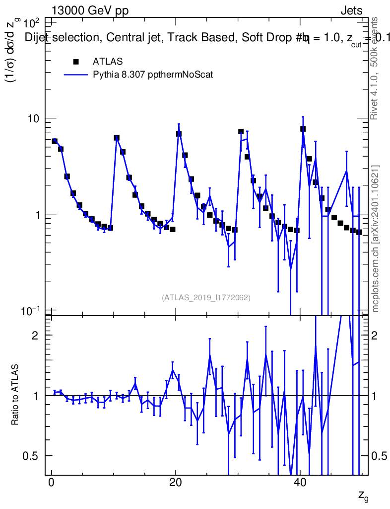 Lines: data, pythia8 8.307 ppthermNoScat |