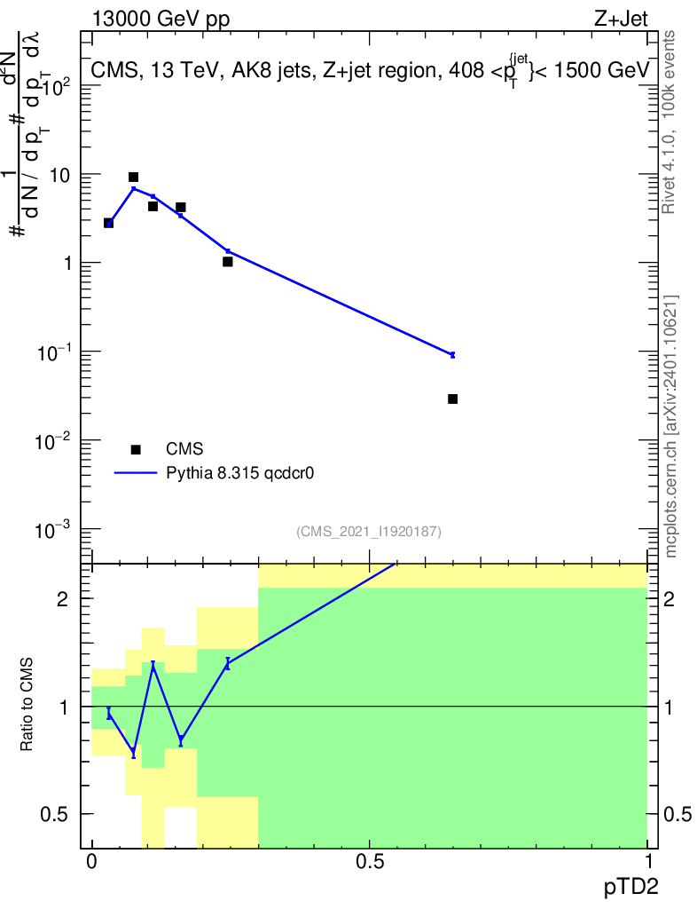 Lines: data, pythia8 8.315 qcdcr0 |