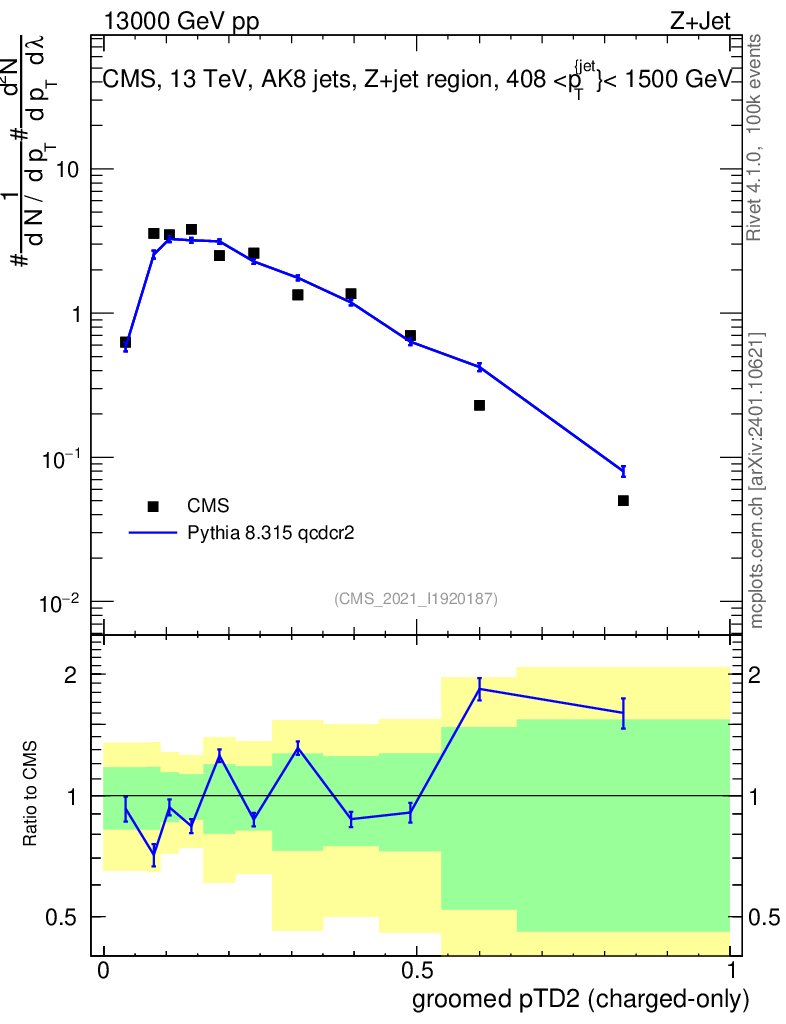 Lines: data, pythia8 8.315 qcdcr2 |
