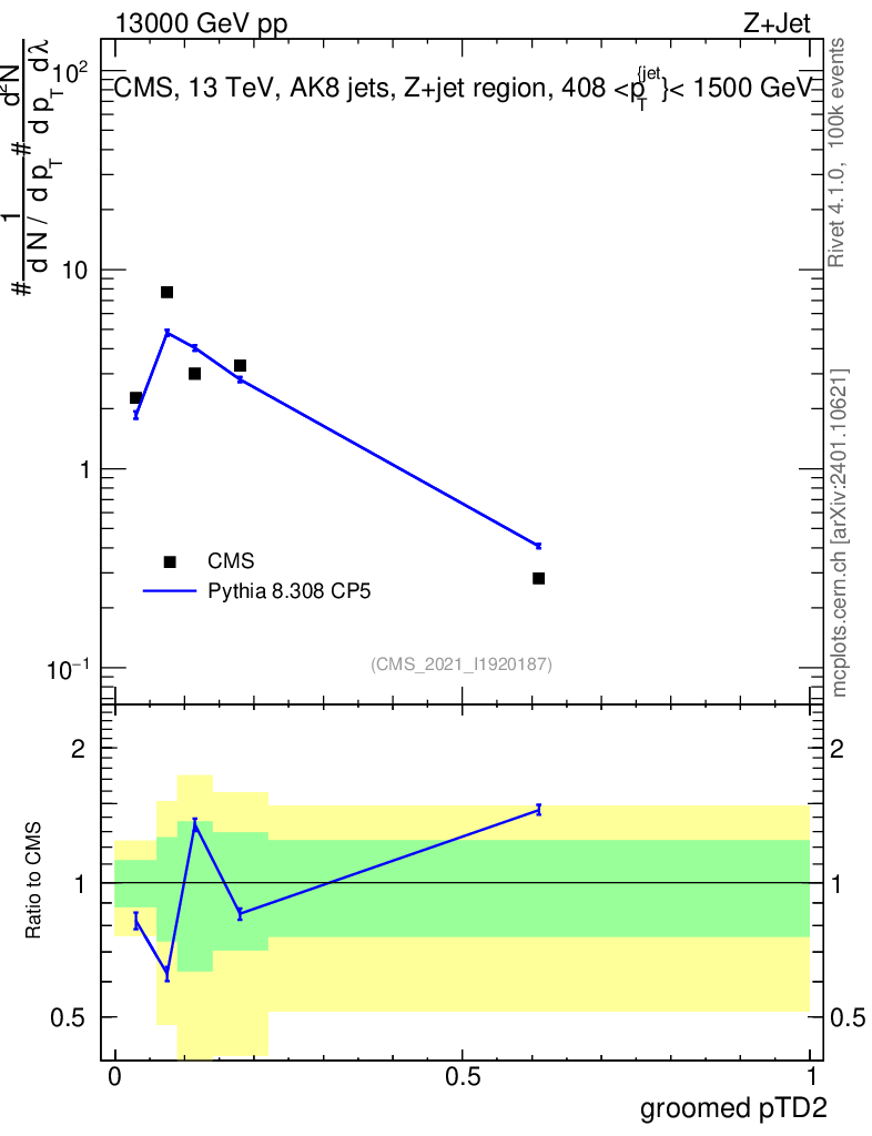 Lines: data, pythia8 8.308 CP5 |