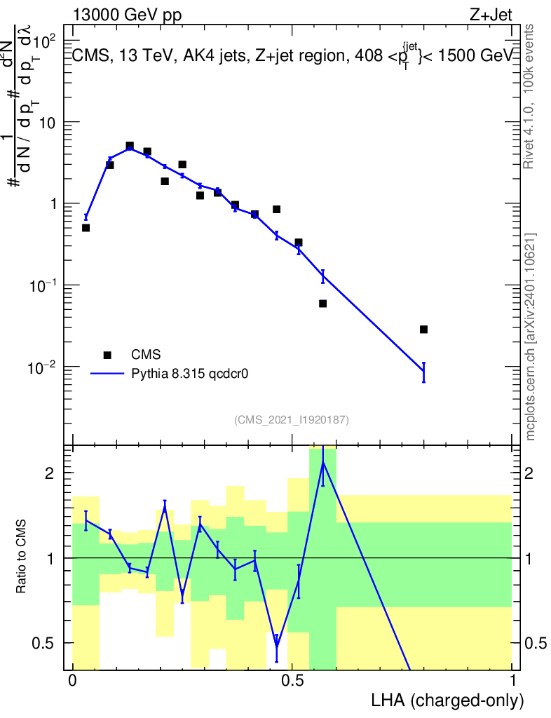 Lines: data, pythia8 8.315 qcdcr0 |